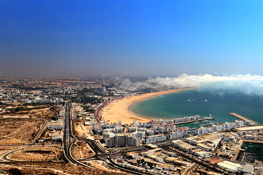 - Playa de Agadir: Situada en la costa atlántica, es una de las playas más largas y populares de Marruecos. La playa cuenta con una gran cantidad de restaurantes y bares.